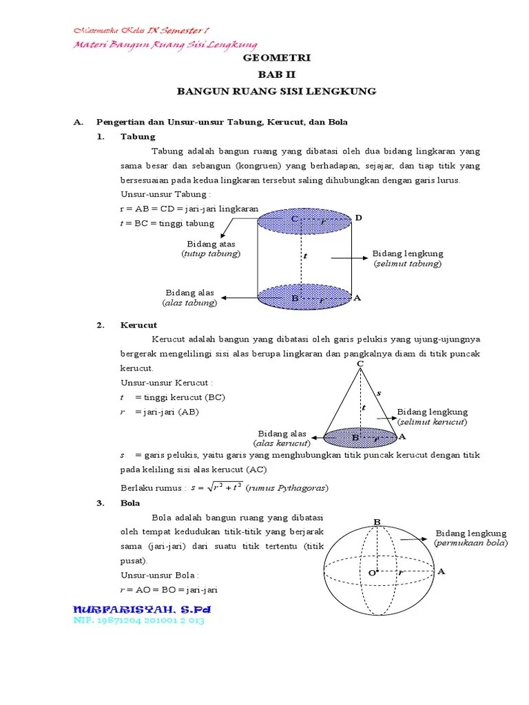 Belum bisa menyelesaikan soal materi bangun ruang sisi. Rangkuman materi, contoh soal, dan pembahasan bangun ruang sisi lengkung. Bangun ruang yang mempunyai satu sisi berupa bidang lengkung, satu titik pusat, dan tinggi sebesar diameternya adalah. Dibahas mencari volum, luas permukaan dan . Sebuah bola besi berada di dalam tabung plastik terbuka di bagian atasnya seperti nampak pada gambar berikut.